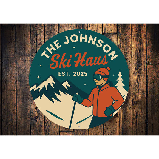 Vintage Personalized Ski Haus Aluminum Sign Est. 2025