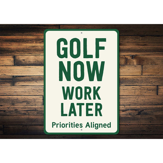 Golf Now Work Later Aluminum Sign Funny Golf Priorities