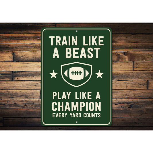 Train Like a Beast Play Like a Champion Aluminum Sign
