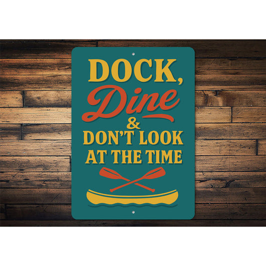Dock Dine & Don't Look at the Time Aluminum Sign