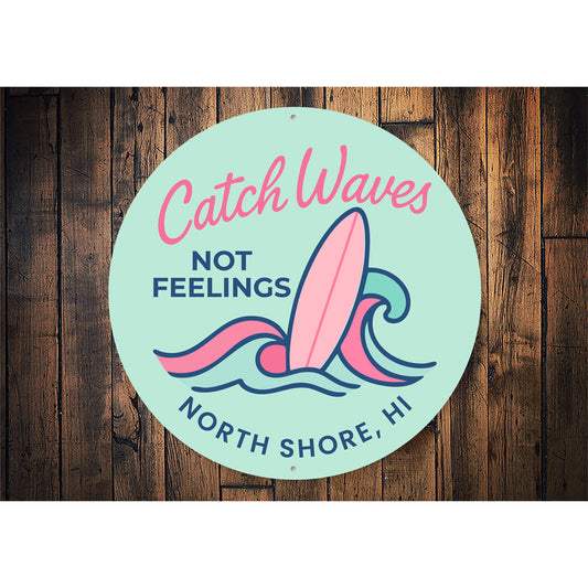 Catch Waves Not Feelings North Shore Hawaii Round Sign