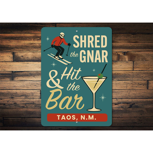Shred The Gnar And Hit The Bar Taos New Mexico Ski Sign