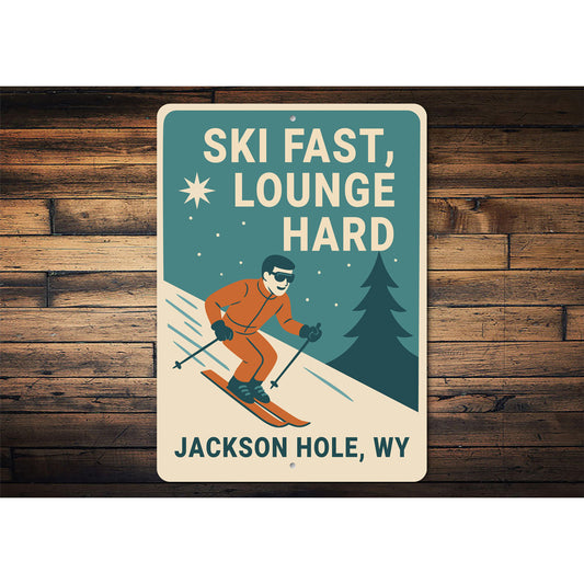 Ski Fast Lounge Hard Jackson Hole Wyoming Sign