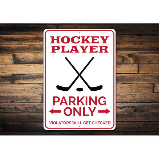 Hockey Player Parking Metal Sign