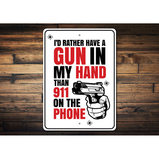 I'd Rather Have a Gun in my Hand Than 911 on the Phone Metal Sign