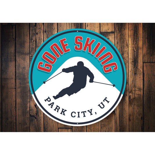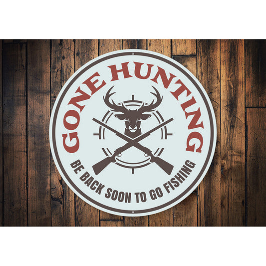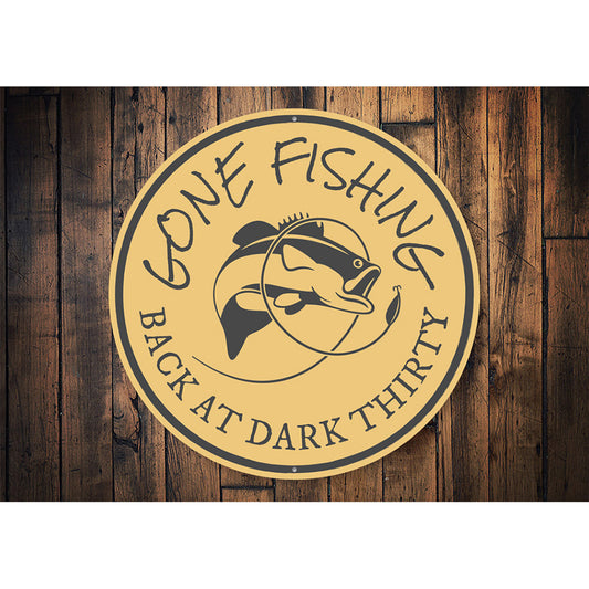 Gone Fishing Back at Dark Thirty Cabin Metal Sign