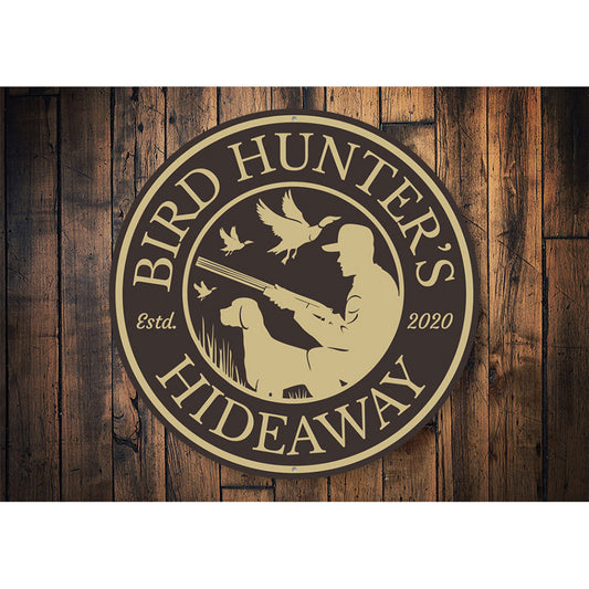Bird Hunter's Hideaway Cabin Estd. Year Metal Sign