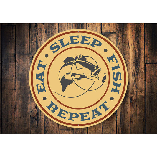 Eat Sleep Fish Repeat Fishing Metal Sign