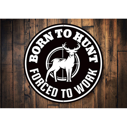 Born to Hunt, Forced to Work Funny Cabin Metal Sign