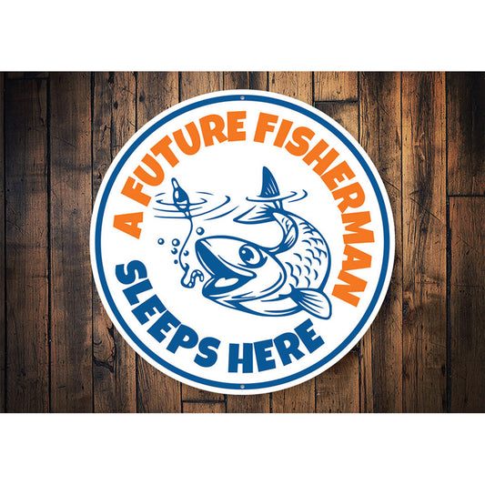 A Future Fisherman Sleeps Here Kid's Room Metal Sign