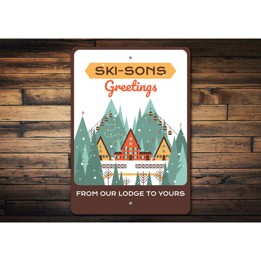 Ski-sons Greetings From Our Lodge To Yours Ski Sign