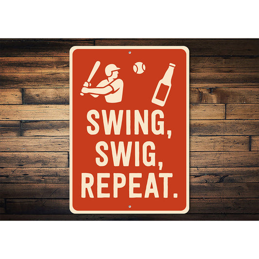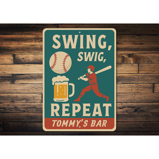 Funny Bar Wall Art Swing Swig Repeat Aluminum Sign
