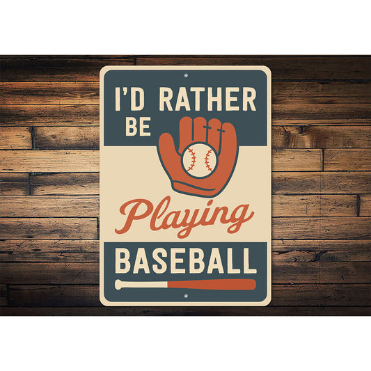 I'd Rather Be Playing Baseball Aluminum Sports Sign