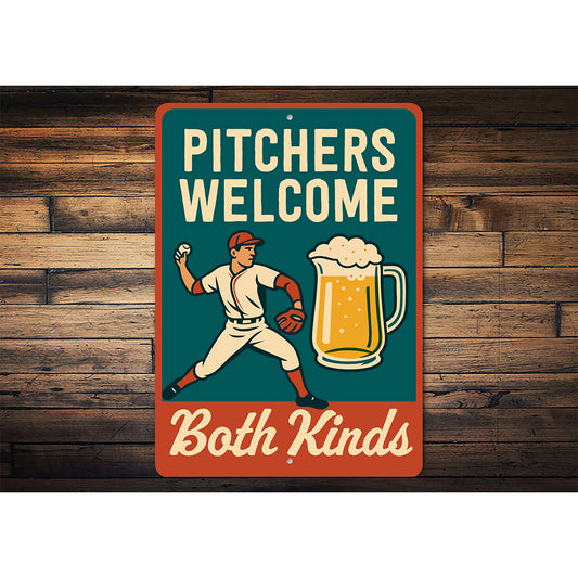 Dual-Meaning Pitcher Sign Baseball & Beer Aluminum Art