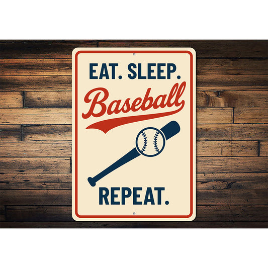 Eat. Sleep. Baseball. Repeat. Aluminum Sports Sign