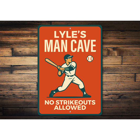 Personalized MAN CAVE No Strikeouts Allowed Aluminum Sign