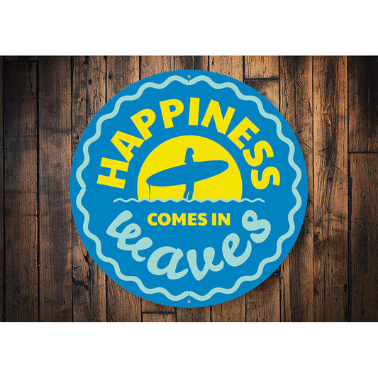 Happiness Comes in Waves Metal Sign