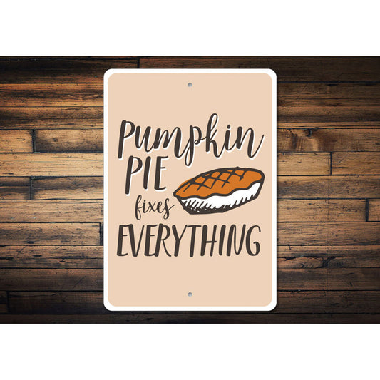 Pumpkin Pie Fixes Everything Metal Sign