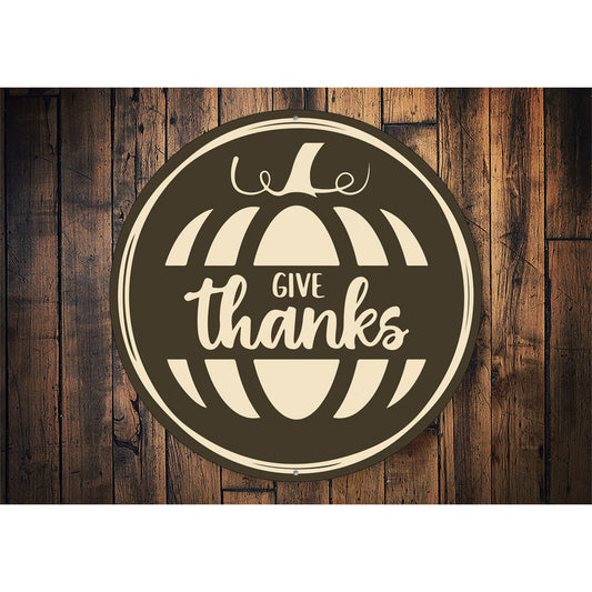 Give Thanks Circle Metal Sign