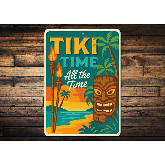 Vintage Tiki Time All the Time Aluminum Bar Sign