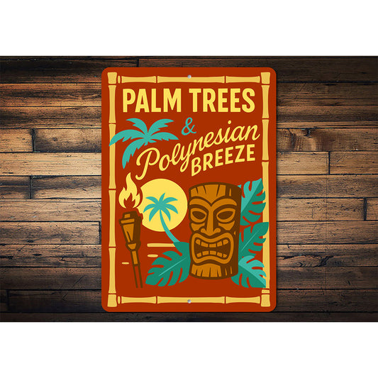 Vintage Palm Trees And Polynesian Aluminum Tiki Sign