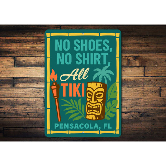 Tiki No Shoes No Shirt Aluminum Bar Sign Pensacola FL