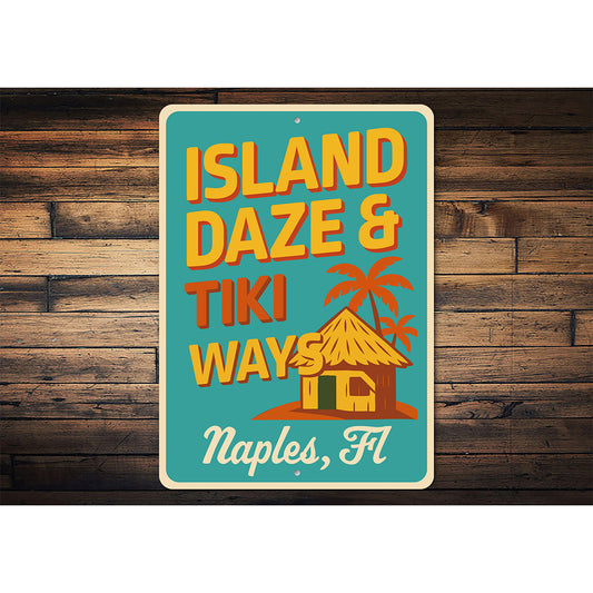 Vintage Island Daze & Tiki Ways Aluminum Sign Naples, FL