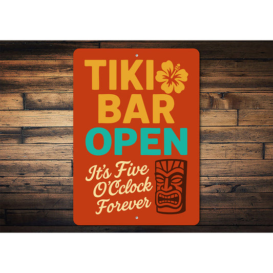 Tiki Bar Open Aluminum Sign It's Five O'Clock Forever