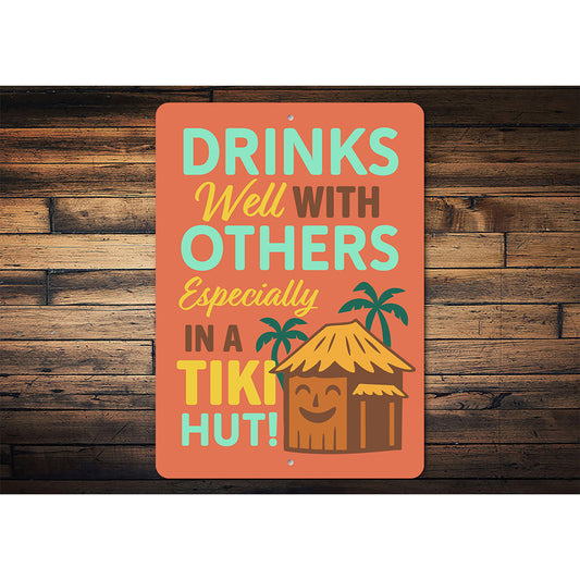 Vintage Drinks Well With Others Tiki Hut Aluminum Sign