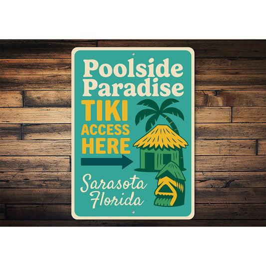 Vintage Poolside Paradise Tiki Access Aluminum Sign