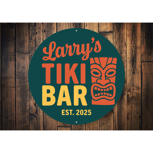 Retro Tiki Bar Metal Sign Personalized Est. 2025 Decor