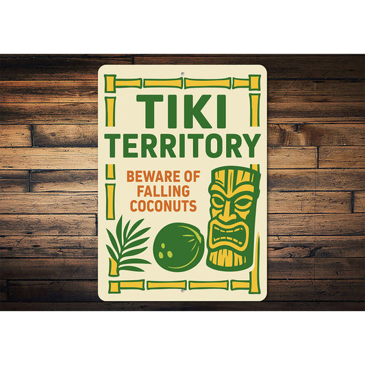 Vintage Tiki Territory Metal Sign Beware Falling Coconuts