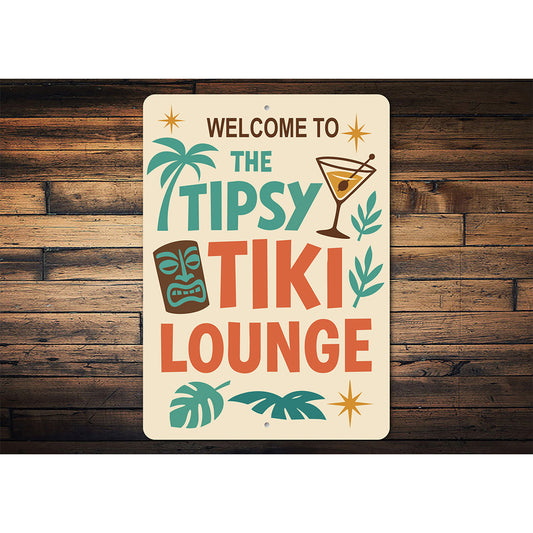 Vintage Welcome to The Tipsy Tiki Lounge Aluminum Sign