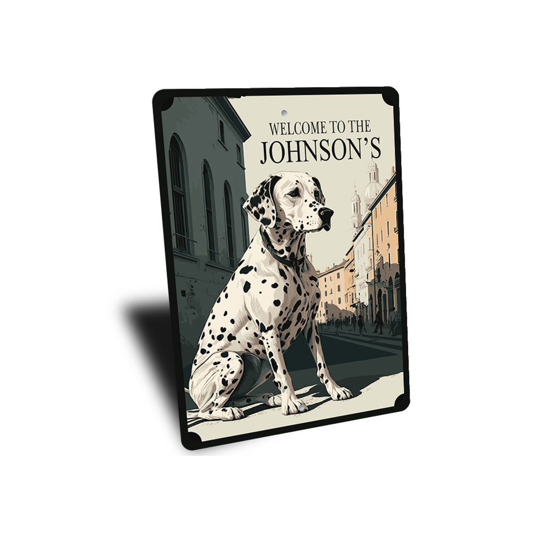 Custom Family Dalmatian Dog K9 Welcome Sign