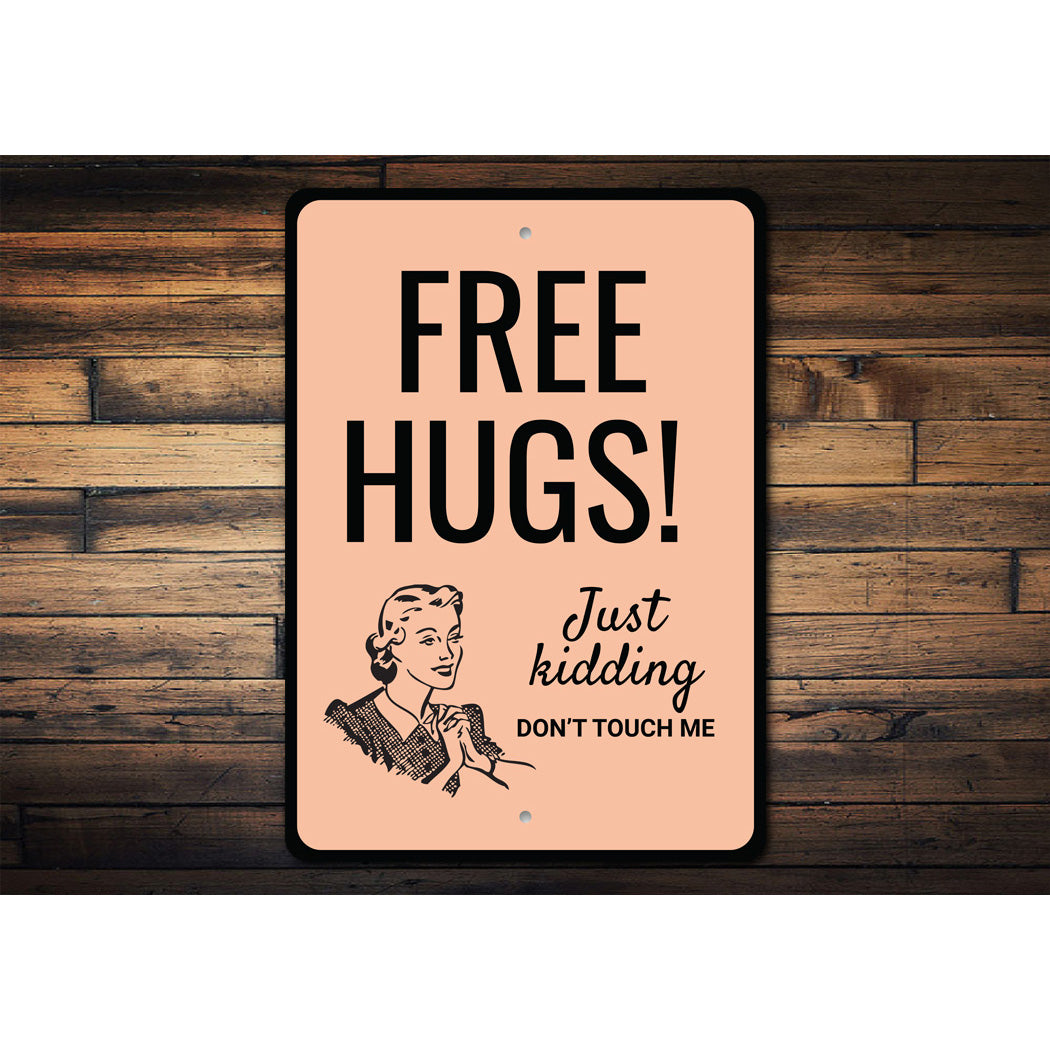 Free Hugs Just Kidding Metal Sign