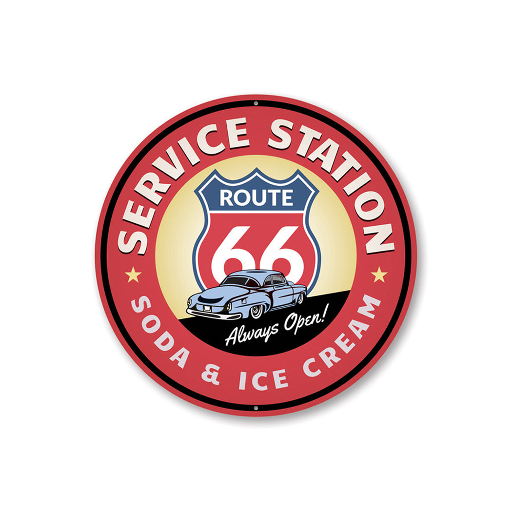 Route 66 Soda and Ice Cream Service Station Metal Sign