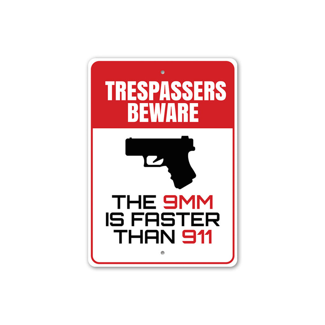 The 9mm is Faster Than 911 Beware Trespassers Metal Sign